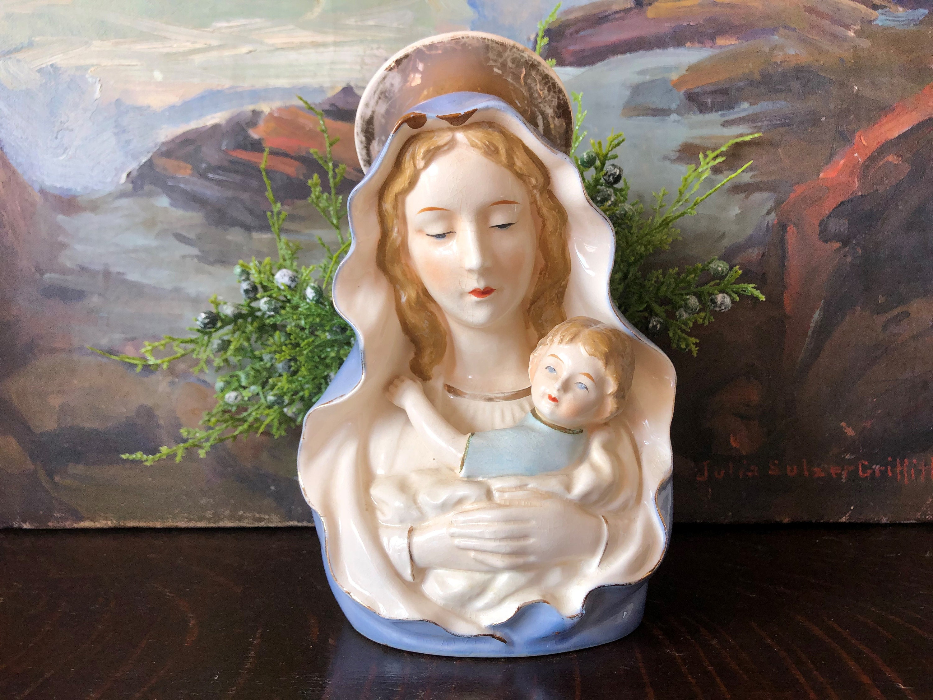 Vintage Porcelain Virgin Mary Bust Virgin Mary Planter Etsy